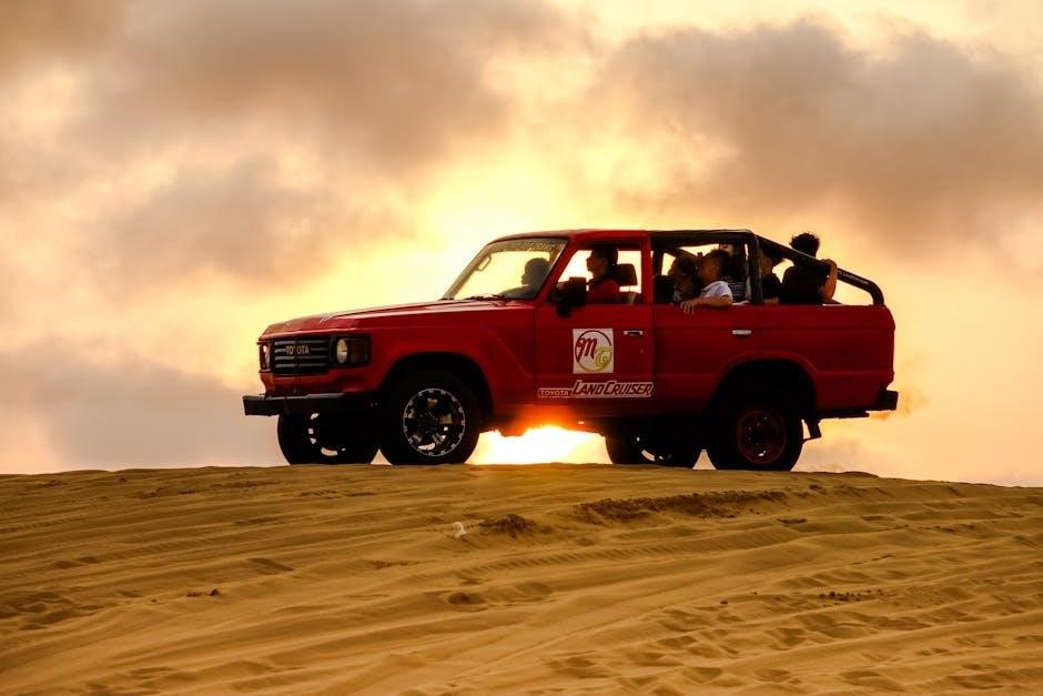 The Toyota FJ Cruiser Owner’s Manual is the first point of reference for any new owner, providing essential information about the vehicle’s operation and basic maintenance. It covers topics like instrument panel explanations, seat adjustments, and the location of key controls.